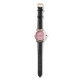 personalized watch, pink dial, gold watch, white leather strap, feminine gift, elegant wristwatch, monogram watch, luxury accessory, custom initials, timeless fashion