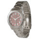 Este relógio feminino tem um design boho de flores de coral se repetindo através da design num campo de verde.