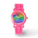 Um relógio brilhante de unicórnio arco-íris. Menina, perfeita para as crianças. Personalize-o com o nome do seu filho.