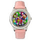 Bolhas (rosto chinês/japonês) Coração rosa de aço inoxidável ajustável do Bezel Stainless Steel Pink Watch. Imagens Copyright (C) Kenneth Kenji Yoncich. Todos os Direitos Reservados.