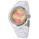 Relógio personalizável e bonito com flores laranja e vermelha. Faz um presente excelente para a mulher na sua vida.