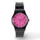 Brilhante de luxo puro em rosa brilhante ou quente com números pretos em uma face do relógio. Adicionar um monograma ou texto personalizado. Cuidado com o pulso feminino. Brilhante rosa quente.