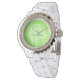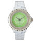 Este relógio fantástico foi projetado para a noiva. A design apresenta um padrão de bonito flores cor-de-rosa de maçã. São 2 tons de rosa diferentes e todos têm um meio amarelo. Eles são ideais para o Casamento da primavera e são misturados entre maçãs. Cada maçã é verde, com uma pincelada vermelha de um lado e um pequeno caule castanho. Há um círculo verde claro com padrões brancos marmoreados que contém texto personalizável para que você possa incluir todos os detalhes importantes.