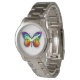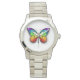 Borboleta monarca realista em todas as cores do arco-íris num fundo branco. Borboleta-arco-íris.