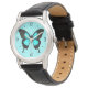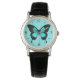 Borboleta - azul-turquesa e preto - fotografia digitalmente melhorada contra um fundo turquesa/gradiente de folha