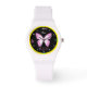 Relógio de moda bonito com borboletas cor-de-rosa e nome facilmente personalizado, mensagem para meninas. Design de na moda, fascinável, Legal, para as crianças aprenderem tempo. O texto, o nome e os números são facilmente ajustados no modelo. Fotografia original/Arte/Design por trabalho4Sonho.