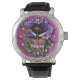 Butterfly Purple Poppy Watch, roupa e presentes por ArtMuvz Illustration. Coincronia com a t-shirt Poppy para jardinagem, roupa de jardineiro de flores.Aparão de jardim de flores.Para personalizar, adicione o seu nome ou adicione texto. Personalize este relógio de flor para torná-lo exclusivo seu ou para dar como presente personalizado