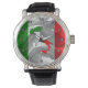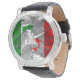 Bota italiana sobre a bandeira de acenar, relógio de padrão italiano patriótico