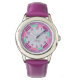 Projetado para a criança que está aprendendo a ler o tempo, o rosto do relógio tem uma clara discagem legível, e uma divertida cor legal de na moda. o fundo é uma prata metálica falsa para adicionar elegância. A hora e a cada 5 minutos são claramente escritas enquanto os 5 minutos no intervalo são indicados por um ponto para ajudar a criança a aprender a ler o tempo com facilidade. Personalizadas, personalizadas, meninas legal na moda moderna e moderna correia roxa de couro, caixa de aço inoxidável, relógio de pulso. Basta digitar o nome. Vá em frente crie um relógio personalizado maravilhoso para a menina da vida - filha, irmã, sobrinha, neta, afilhada, enteada. Faz um presente personalizado de excelente para aniversário, graduação, natal, feriados e muito mais.