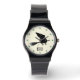 Design com relógio de bruxas único, com silhueta de bruxas voadoras e uma citação engraçada.