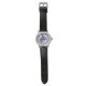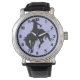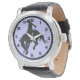 Este relógio de pulso apresenta uma imagem de uma silhueta preta de um caubói em um bronco de balanço. A imagem é colocada sobre um fundo azul-claro e está rodeada de números pretos e segmentos minúsculos para facilitar a leitura.