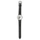 A ilustração original do desenho de Destei de um cachorro francês Bulldog francês / francês, preto e de cor bronzeada, que está ligeiramente inclinado. A face do relógio é feita de linhas pretas mínimas, mas algumas delas estão escondidas atrás da imagem do cão.
