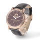 Create your own custom brand luxury watch with Burgundy luxury elegant couple Monogram Watch. Timeless elegant watch dial design with fine indexes. Add your own custom monogram, custom name, designer name, initials, year of birth, logo, icon, photo image, etc. Sophisticated presence of modern minimalist style with elegant script typography template. Luxurious watch for him. Make it a cool new gift for boyfriend, boyfriend, dad, father, husband, brother, son, boyfriend, grandpa, grandpa, grandfather, stepdad, uncle, coworker, employee, company boss, business partner, colleague, best friend, teacher, coach or retiree. Unique monogrammed gift ideas for men's birthday, graduation, anniversary, retirement, vacation, wedding party, appreciation, employment, work, etc. Large diameter about 44mm. Classic vintage style with 22mm fashion black leather wrist strap. White or custom background color. Perfect for 20th, 30th, 40th, 50th, 60th, 70th, 80th, 90s celebrations. Affordable quartz watches under $100. Nice for casual daily wear and special occasions. Also available for other models with brown leather or steel bracelet.