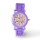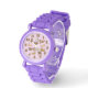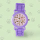 Lindo relógio de pulso lavanda para crianças que amam cães. Este acessório divertido é decorado com um pacote de ilustrações de desenho animado caprichosas de cães, cada um em uma pose divertida diferente. O design inclui numerais grandes e negritos para cada hora. Presente agradável para qualquer criança que ama cães.
