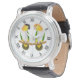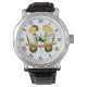 Pintura original de belas artes de papagaios coloridos da artista Carolyn McFann do Two Purring Cats Studio impressa em um relógio de qualidade para amantes de papagaios.