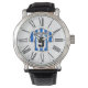 Assistentes de fãs de futebol. Design com camisa azul e branca. Adicione o nome e o número da sua escolha. O rosto do relógio tem números romanos.
