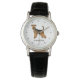 A ilustração original do desenho de Destei de um cão da raça Airedale Terrier. Há também uma área de texto personalizável para um nome ou outro texto personalizado. A face do relógio é feita de linhas pretas simples.
