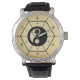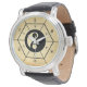 Os antigos chineses dividiram o tempo em 12 blocos, com cada bloco representando 2 horas. Essa filosofia dos doze também está relacionada a como contaram o número de anos, sendo 12 anos um ciclo completo, daí os 12 jardins zoológicos chineses. Este belo relógio discado usa os 12 caracteres chineses/kanji associados aos 12 blocos, intercalados para ajustado no relógio moderno de seis horas, e ao fazer isso incorpora o elemento do Ying e Yang: O Taichi Bagua, que também está profundamente enraizado na antiga filosofia chinesa. Este relógio faz assim um presente perfeito para o ente querido que é versado em práticas culturais e espirituais orientais, seja ele pai, irmão, marido, tio, sobrinho ou namorado, adequado para qualquer ocasião.