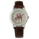 Relógio cardeal vermelho feminino, fundo de cinza com trim de ouro. Muitas cores e estilos de observação diferentes para escolher.