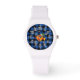 Uma ilustração de um peixe de laranja amarelo tropical, de natal, sob o oceano, com bolhas sobre um fundo de búfalos preto azul com verificação de padrão. Este relógio com um design de desenho animado é uma ideia de presente para amantes do Natal, amantes da pesca e amantes do ronco.