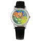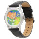 Relógio com a pintura animal de Louis Wain Cat Stalking (1860-1939). Um gato listrado de laranja anda num campo verde à noite. Flores brancas, roxas e vermelhas estão no primeiro plano. Um presente maravilhoso para amantes de gatos e arte inglesa.