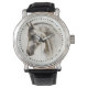 Um relógio moderno, com uma pintura em estilo aquoso de um cavalo de maçã de cinza e uma simples face de relógio, faz um belo dom equestre e acessório temático de cavalo para amantes de cavalos e cavaleiros.
