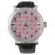Relógio Cinza e xadrez cor-de-rosa com flores camomilares
