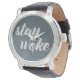 Deseja que outras pessoas se mantenham informadas sobre as coisas que se estão a passar nos seus bairros e no mundo em geral? Este moderno e elegante relógio de design de tipografia guiada com as palavras "ficar acordado" envia essa mensagem exata. Personalize este design adicionando seu próprio texto.