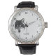 Retrato animal da cinza Wolf Canis lupus em preto e branco. Um relógio de pulso elegante para qualquer um. Personalizável. Você pode alterar ou excluir o texto sob a imagem. Você pode transferir este design para outro produto de sua escolha, basta usar uma opção à direita desta descrição.wristwatch