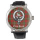 Crachá escocês Clan Scott crest e texto sobre fundo tartano