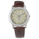 Elevate your style with this sophisticated analog watch featuring a rich brown faux-croc leather strap and a polished silver-tone case. The cream dial with classic Arabic numerals and a subtle 'GENÈVE' detail exudes timeless elegance, perfect for both business and casual wear. A versatile accessory that makes a distinguished statement or an ideal gift for the man who appreciates enduring style and precision. Personalized Wristwatch.