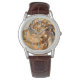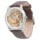 Mostre sua paixão por seu hobby de coleta fóssil com um relógio bonito. Este é um belo exemplo de Cleoniceras Cleon, de Madagáscar. Este fóssil tem uma bela seção transversal mostrando câmaras cristalizadas de calcita ouro. Os amonitas eram o principal predador marinho durante o Jurássico e até ao Cretáceo. Os parentes modernos que estão por perto hoje incluem lulas e náuseas encantadas.