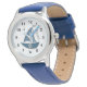 Personalized kids wrist watch for boys featuring a cute sailboat in a coastal nautical style. Custom name option makes this boys watch a perfect personalized gift for birthdays, holidays, or back to school.