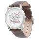 Cuidado com ele, excelente como presente para um Pastor, "Com Deus todas as coisas são possíveis" na face do relógio, banda de Couro Castanho. Aniversário, Dia de os pais,