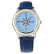Um rosa de bússola sobre fundo azul claro faz um acessório náutico perfeito para o proprietário do barco, para cruzeiro, marinheiro ou iate.