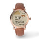 Design abstrato mínimo em tons de terra quente com uma citação inspiradora: "Confie no Processo.