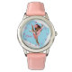 Aqui está um relógio de pulso fofo para sua bailarina! Ele apresenta uma garota americana dançante em um tutu rosa e vestindo uma flor rosa. Ao lado da imagem de bailarina está seu nome ou outro texto personalizado em rosa brilhante. A imagem e o texto são colocados em um retângulo de borda azul pastel. Os números cor-de-rosa coincidentes facilitam a leitura do relógio.