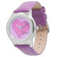 Este é um relógio bonito para meninas, com um grande coração rosa brilhante no centro em um fundo rosa e branco pontilhado. Adicione facilmente seu nome para um toque personalizado.
