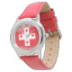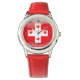 Corações suíços sobre a bandeira brilhante, relógio de padrão patriótico