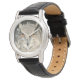 Mantenha um olho no tempo com este relógio apresentando um desenho a lápis colorido e caneta de uma Coruja-de-chifre-grande com olhos laranja penetrantes.