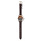 Uma estrada pacífica no interior de Ohio durante a queda mostrada na face deste lindo relógio de couro marrom.
