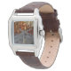 Uma estrada pacífica no interior de Ohio durante a queda mostrada na face deste lindo relógio de couro marrom.