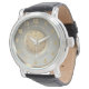 Relógio Couro escuro geométrico dourado personalizado e el