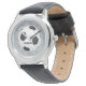 Tema esportivo do futebol, relógio personalizado para crianças - Center é uma bola de futebol em cinzas, metal escovado, fundo de prata. Números falsos do relógio metálico de prata. Nome personalizado em preto, estilo atlético, com letra de bola. A cor e o estilo do monograma podem ser alterados. Presente bonito e personalizado para pequenos atletas ou fãs de futebol. Este relógio de futebol personalizado está disponível em diferentes cores de banda de relógio, e em muitas crianças assistem estilos, tanto meninos como meninas, assim como relógios de futebol adultos.