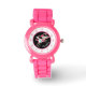 Aqui está um relógio de pulso bonito para ela, com um adorável poodle rosa de desenho animado vestido com um suéter listrado branco e lacrimogêneo. Ao lado da imagem do cão está o nome ou outro texto personalizado em branco. A imagem e o texto são colocados em um plano de fundo preto. A estrutura externa do relógio é branca, com números cor-de-rosa correspondentes. *O Clip art usado neste design é protegido por direitos autorais pela Encore Software, Inc., que permite o uso a seus licenciadores. Todos os direitos reservados.