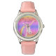 Continue com o tempo de uma forma divertida com este Cute Unicorn Glitter Rainbow Personalized Kids Watch. Ele é moderno projetado com uma bonito face branca de unicórnio e um fundo brilhante colorido de arco-íris. Vem com o nome da criança no script de letras manuscritas de tendências de cinza na parte superior do rosto. Clique na opção personalizar mais e siga o prompt.