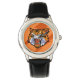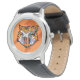 Crianças: relógio clássico de correia de couro mostrado a preto com um impressão de tigre. Escolha esta monitorização a partir de vários estilos. Personalize este relógio ou comprar como está. Imagem licenciada