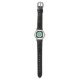 Este único relógio de pulso apresenta um design verde e branco-celta ornamentado e bonito colocado sobre um fundo preto dramático. Os números brancos facilitam a leitura. Trendy, brilhante e colorido!
