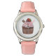 Relógio Cupcake De Morango Cujo Cama É Em Aquarela