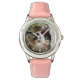 Pequeno gatinho mijando por trás de uma parede com olhos rezados, retrato aproximado. Tirei a fotografia deste gatinho calico fofo em Chipre. Este relógio de pulso feminino com placa de discagem com placa de discagem é uma ideia de presente para amantes de animais de estimação e gatos. Foto tirada por Katho Menden. http://www.zazzle.com/kathom_photo - Se você está vendo um design que não está disponível no seu produto desejado, por favor não hesite em me contactar através do meu compro e eu criarei o produto para você o mais rapidamente possível.